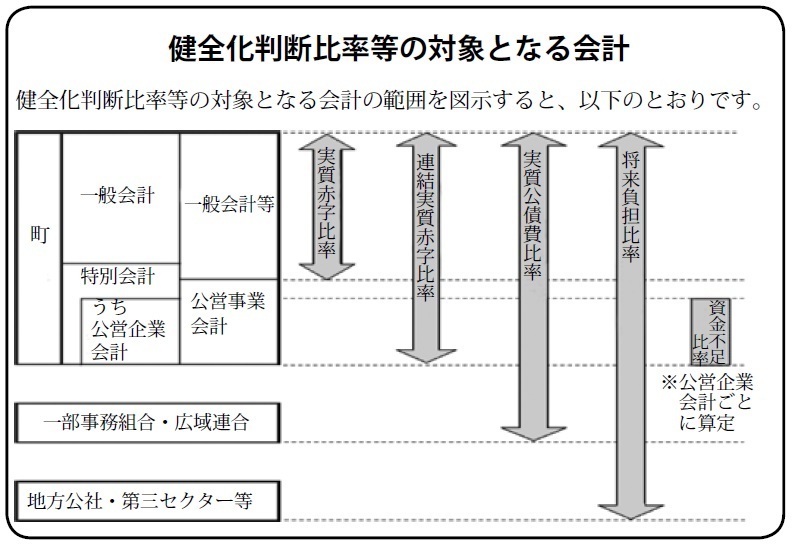 すべての会計の赤字や黒字を合算し、町全体としての赤字の程度を指標化し、町全体としての財政運営の悪化の度合いを示す指標ともいえます。