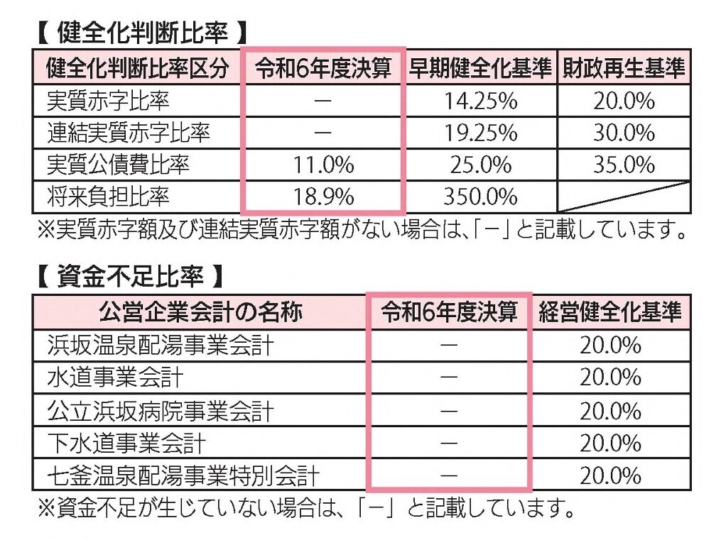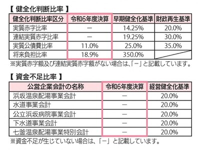 令和6年度決算では、すべての指標で国が定める基準を下回り、町の財政・すべての公営企業会計で健全性を確保できています。