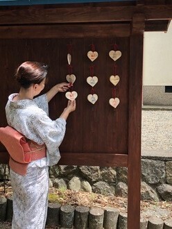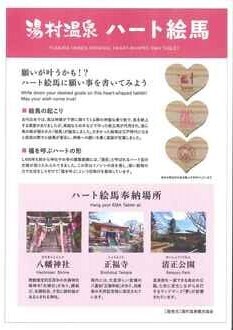 湯村温泉で、ハートの絵馬に願いを込めてみませんか。