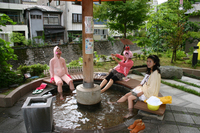 足湯で疲れをとる参加者や記念撮影する参加者も見られました。
