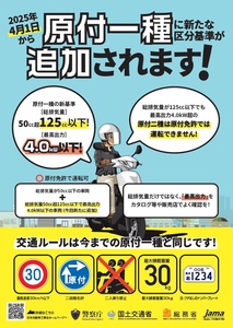 令和7年4月1日から、新たに原付一種の区分に新基準原付が追加されました。