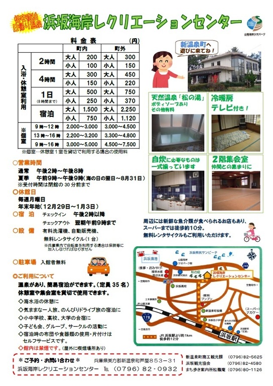 ―問い合わせ― 浜坂海岸レクリエーションセンター ℡(0796)82-0932 |